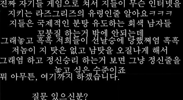 진짜 자기들 게임으로 쳐서 지들이 무슨 인터넷을 지키는 라즈그리드의 유령인줄 알아요ㅋㅋㅋ