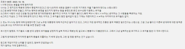 그런데 존나 흑흑 전 피해자에염 쟤가 나한테 증오를 담아 협박하고 있어염 이라는 저 공지 내용보고 진짜 어이가 터져서 원.