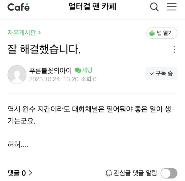 ㄱㄴㄷㄹ 작성일누구랑 해결이 됐다고 하는 거임? 구라치는 것 같은데.