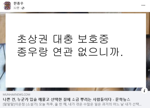 1. 자신이 '소설' 쓰는 것에 대해 비아냥 거리는거 뭐라고 하는거 같음. 난 한종우 학과 석사니까 대강 느껴져요. (학사는 다른 분이심)