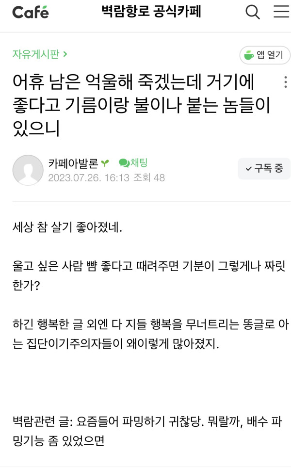 이제 저런 징징 귀찮아서 안 올릴래요