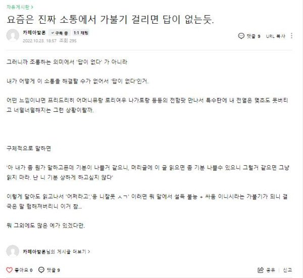 22년 10월 23일 : 요즘은 진짜 소통에서 가불기 걸리면 답이 없는듯.