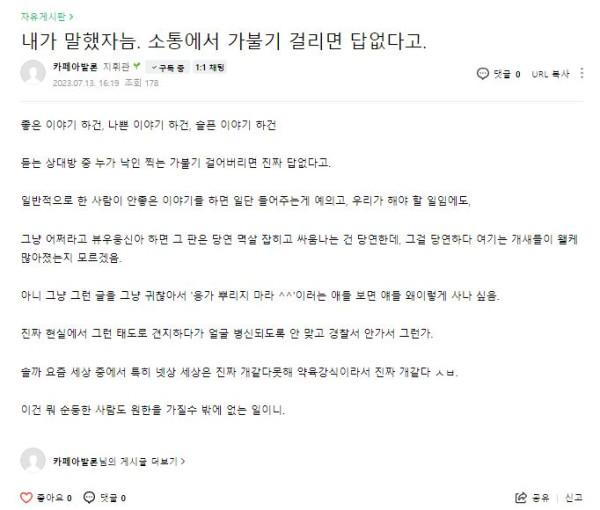 듣는 상대방 중 누가 낙인 찍는 가불기 걸어버리면 진짜 답없다고.