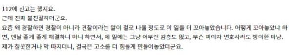 >> 아 여기가 본론이지 참. ㅋㅋㅋㅋ 경찰서 가서도 경찰에게 핀잔 듣는 분이 말은 잘해요 ㅋㅋㅋ