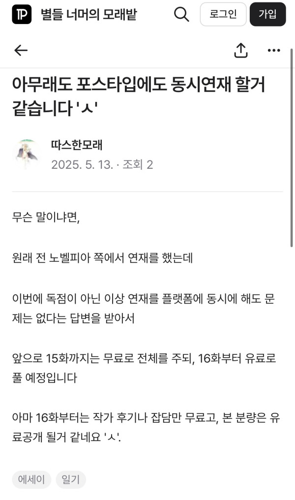 포를롱 작성일돈받고 연재하는줄