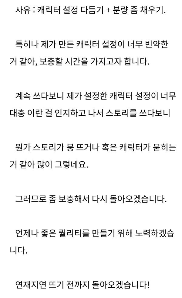 ‘ 연재지연 뜨기 전까지 돌아오겠습니다!’