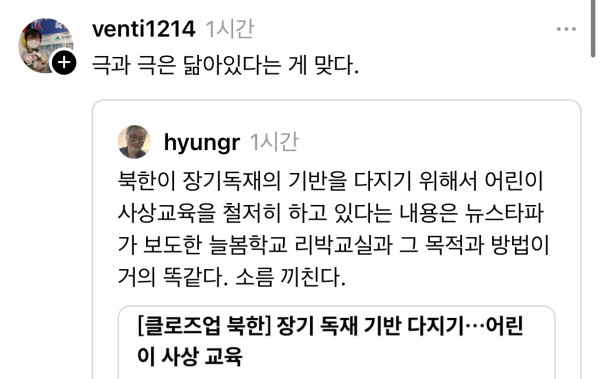 근황글 (250531) 이 종북좌빨 요도종우는 왤케 극단적인지 모르겠어요