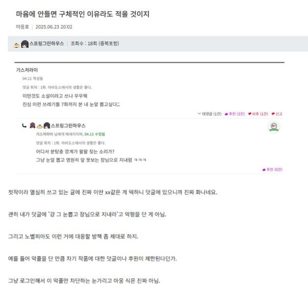그냥 로그인해서 이 악플만 차단하는 눈가리고 아웅 식은 진짜 아님.