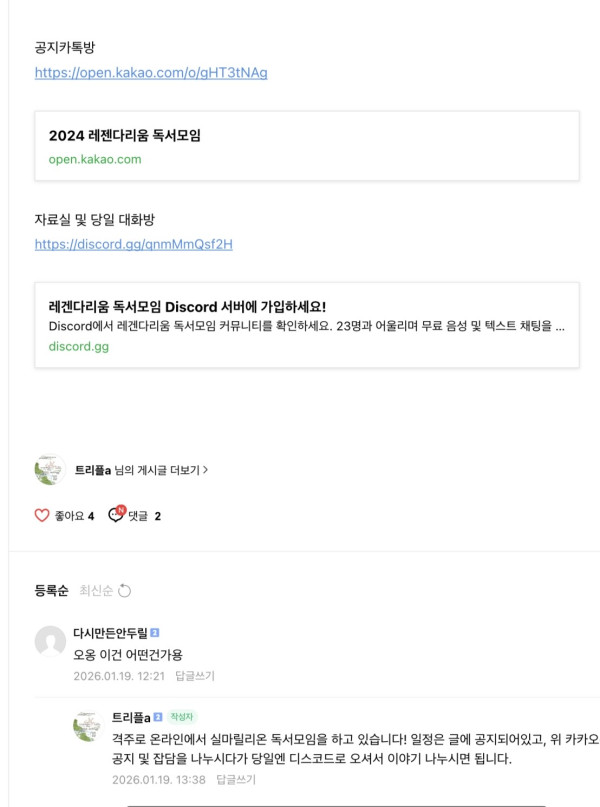 근황글 (260119) 독서모임에서 무슨 개소리할까 궁금하네