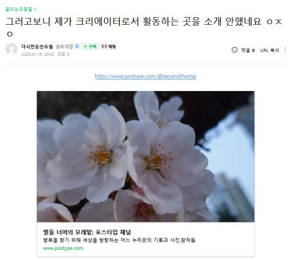 근황글 (260119) 또 지 똥글싸는데 홍보 쳐 싸고 있네