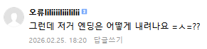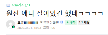 작성자 한종우대가리뚝스딱스 댓글 1건 조회 117회 작성일 26-02-25 21:47본문