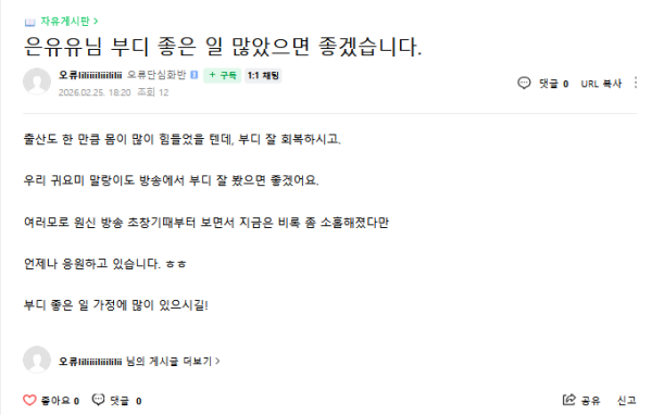 출산도 한 만큼 몸이 많이 힘들었을 텐데, 부디 잘 회복하시고.