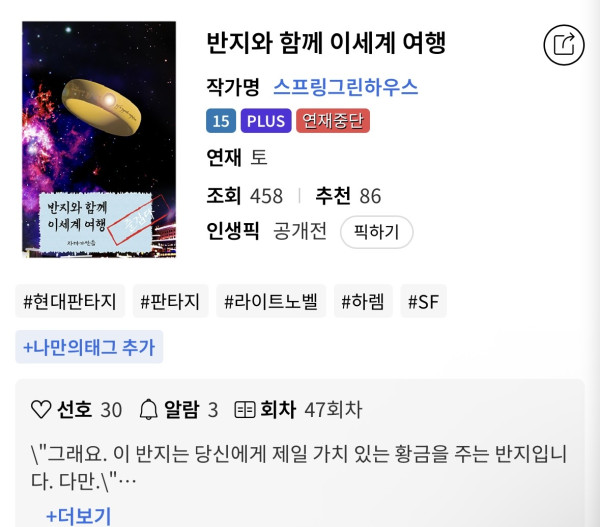 - 반지코세계는 연재중단(1달 이상 연재 안하면 찍힘) 걸리니 몸 비틀어서 글 두개 올렸는데, 그게 중복이네요? 얼마나 급했을까. 리메이크 한다느니 아가리 터는데 아무도 읽지는 않는 그거에도 연재중단 걸리니 얼마나 급했을까