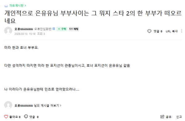 근황글 (260313) 찐따특징 다 묻어나오는 글