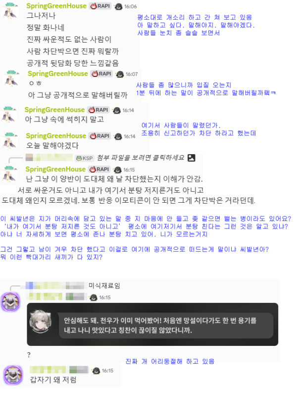 근황글 (260313) 이 찐따새끼는 지가 아무말 없이 차단당한게 억울한가봐?