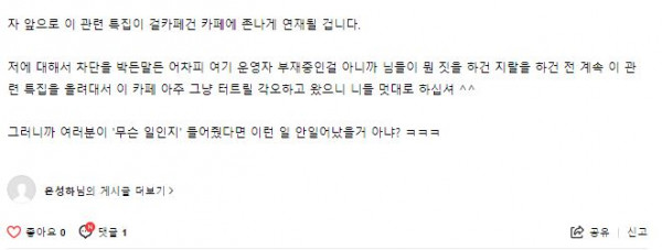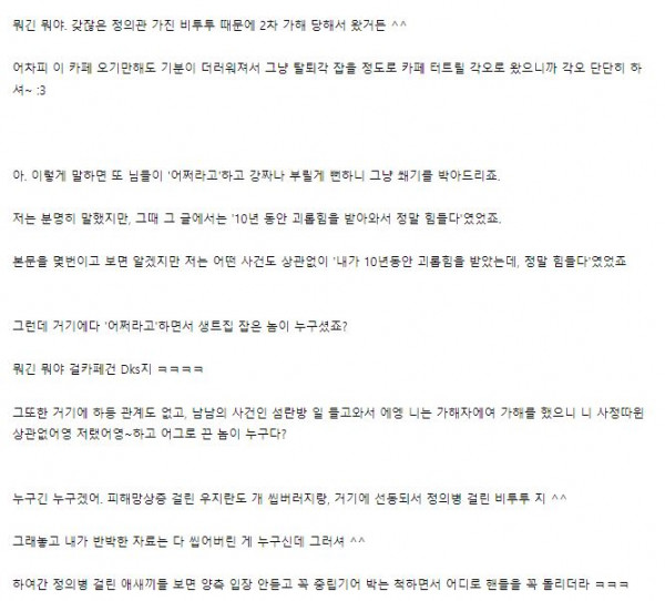 일단 첫번째거랑 두번째거 사이 내용은 대강 1주 전 쯤에 라오카페에 올린 호소글에 대해서