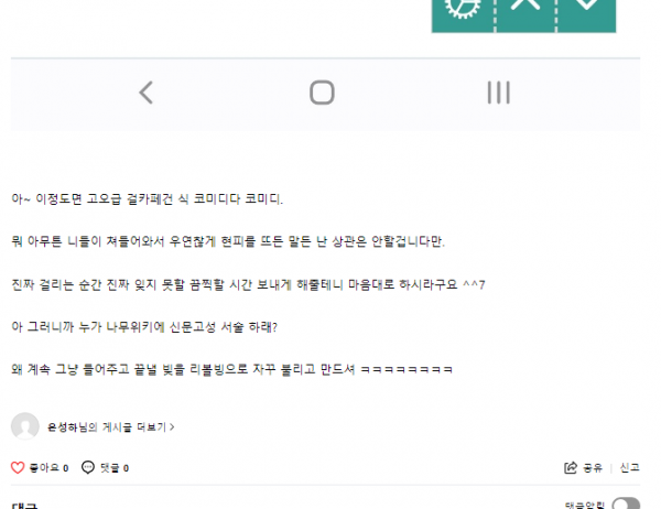 지 말론 '거기 닫게 하느라 지 계정을' 요런 식으로 개소리하던데, 응 아니야. 니가 일 더 키웠어.
