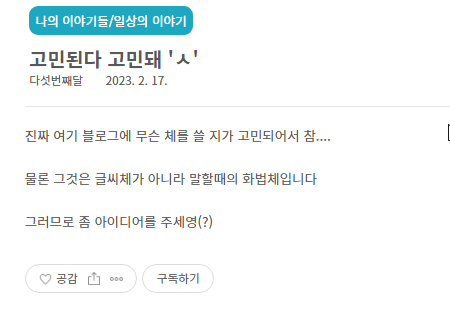 왜요? 전처럼 또 티스토리에 징징대고 폭파 시키고 다시 네이버 블로그 가실려는거 아니죠?