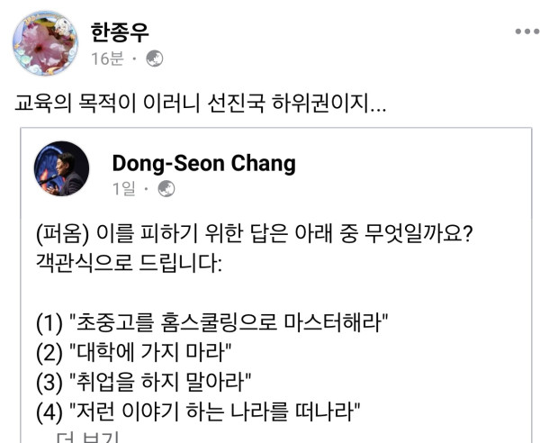 근황글 (230926) 교육의 목적이 이러니 선진국 하위권이지